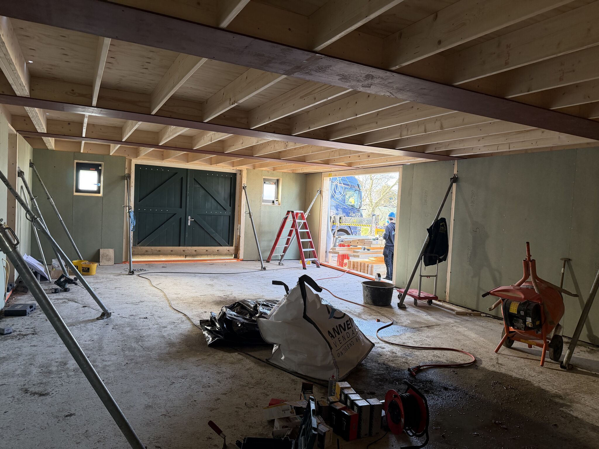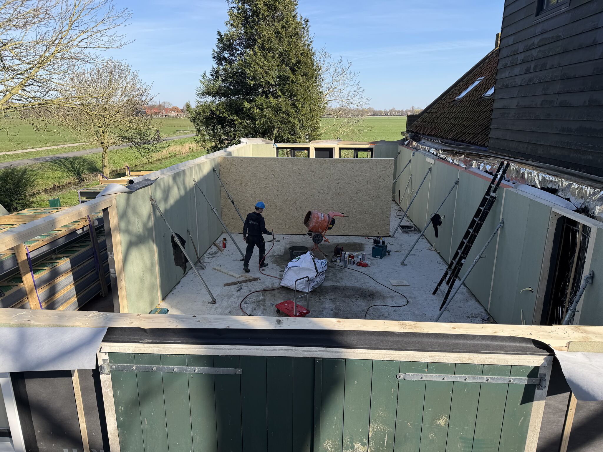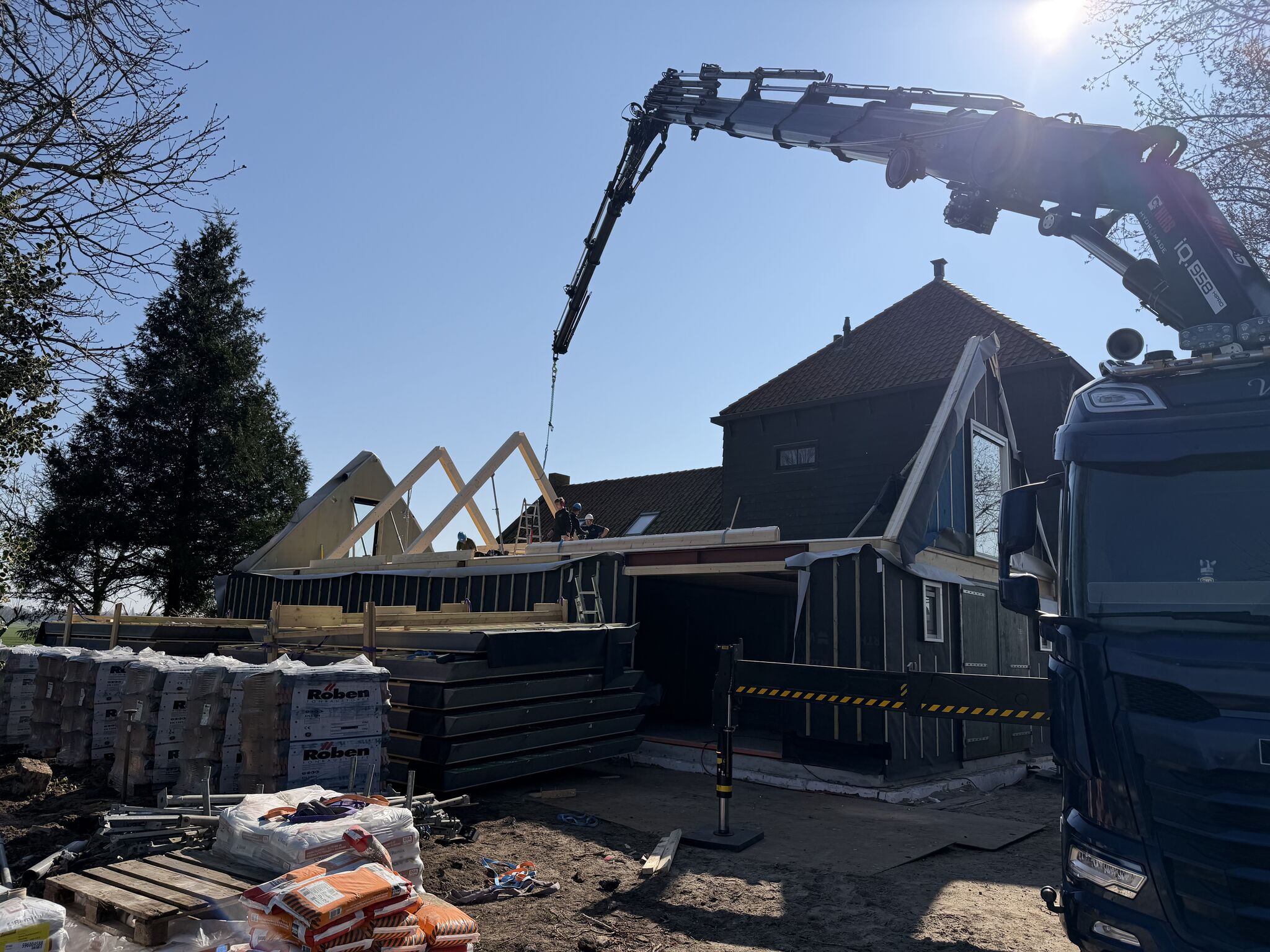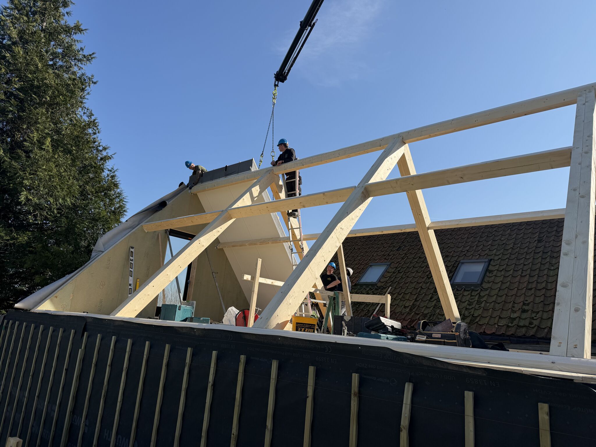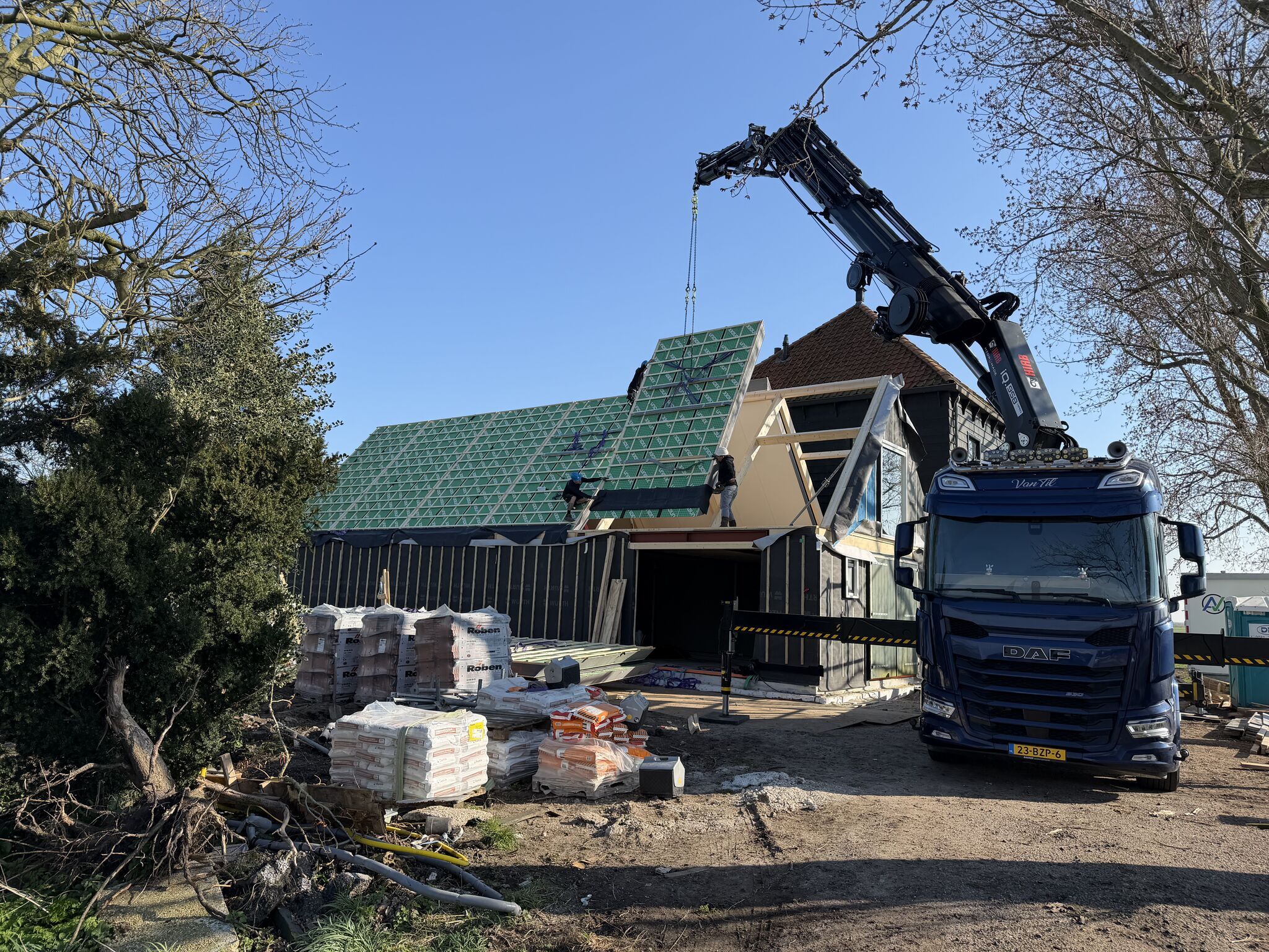 Achter de schermen is in korte tijd veel werk verzet. De fundering is gerealiseerd, de vloeren zijn gestort en in onze werkplaats zijn de wanden, vloeren en daken prefab geproduceerd. Het moment waarop alles samenkomt op de bouwplaats, blijft bijzonder. Dan zie je voorbereiding, vakmanschap en samenwerking letterlijk op hun plek vallen.